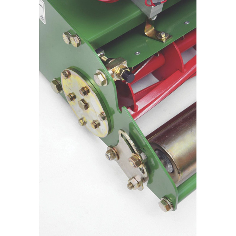 Rolă din aluminiu cu 2 secțiuni pentru o rotire ușoară, cu o dungă excelentă Structura tubulară puternică asigură protecția motoarelor de acționare Baterie britanică de 111 Ah/5,76 kWh Lame duble contrarotative Sistem de clic ușor de utilizat pentru înălțimea de tăiere Ghid complet reglabil Frână de parcare mecanică simplă, acționată de o pârghie Pas complet cu o singură încărcare Colectare excelentă în condiții umede sau uscate Reîncărcare rapidă în 2 ore Reglare ușoară a controlului ecranului - încărcare, selectare viteză, setare inversă pentru aliniere ușoară, viteză lamă în funcție de condiții, distanță parcursă Viteză mică de preluare pentru o pornire lină Emisii HAV și zgomot extrem de reduse permit utilizarea pe întreaga zi în orice mediu Economii uriașe de combustibil Întreținere redusă, costuri foarte mici pe durata de viață