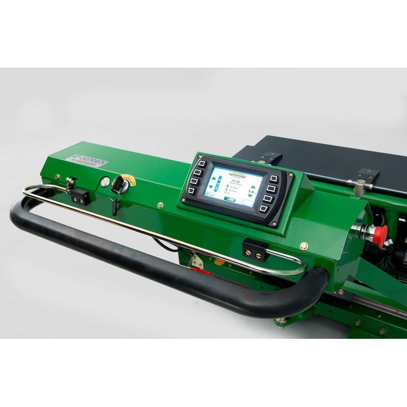 Cadrul tubular puternic asigură protecția motoarelor de acționare Baterie de 111Ah/5,76 kWh, fabricată în Marea Britanie Maner reglabil pentru a se potrivi fiecărui operator 2-3 trepte de înclinare cu o singură încărcare Reîncărcare rapidă în 2 ore Reglare ușoară a controlului ecranului - încărcare, selectare viteză, setare inversă pentru aliniere ușoară, viteză lamă în funcție de condiții, distanța parcursă etc. Viteză mică de preluare pentru o pornire lină Emisiile de aer comprimat (HAV) și zgomotul extrem de scăzute permit utilizarea pe întreaga zi în orice mediu Sistemul de baterii permite atașarea scaunului remorcii, realizând totuși o tăiere de peste 20 km Suport spate standard Opțiuni de 3 role spate - canelate (standard), netede sau acoperite cu cauciuc Economisii uriașe de combustibil Întreținere redusă, costuri pe durata de viață foarte mici Cilindrul cu 8 lame Cleme întreținute pe metru la orice viteză de avans - turații cilindru autoreglabile